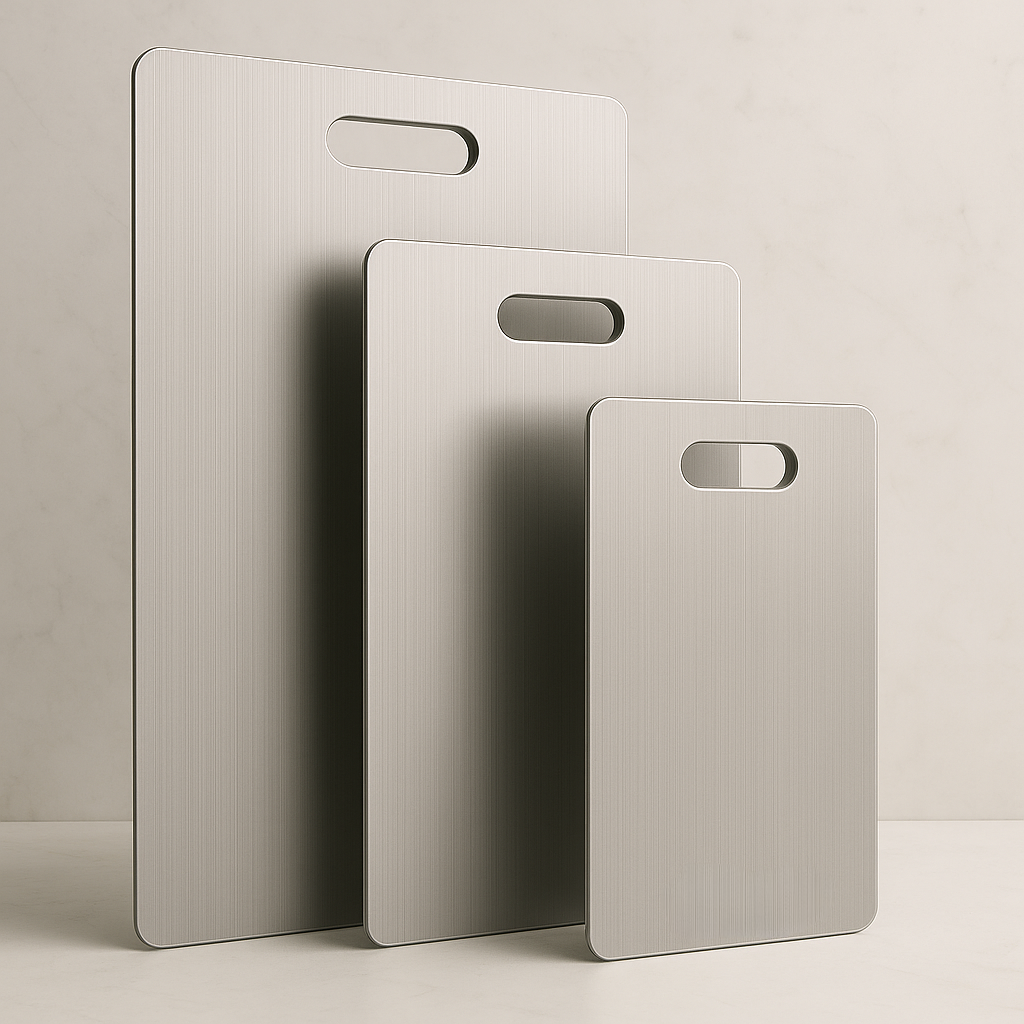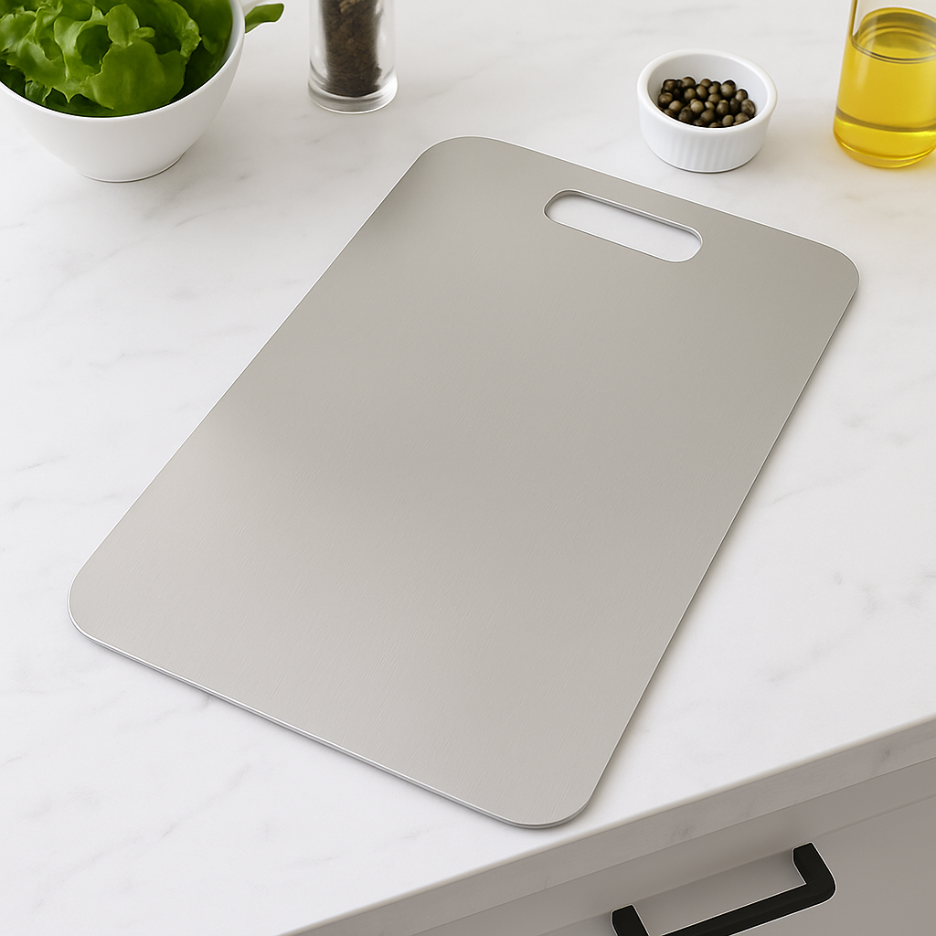 Drewno pleśnieje. Plastik zatrzymuje bakterie i tępi noż. Tytanowa Kuchnia nie ma żadnej z tych wad. Jest nieporowata, przyjazna dla ostrzy, wolna od chemikaliów, stworzona na lata — mądrzejszy i bezpieczniejszy wybór do każdej kuchni.